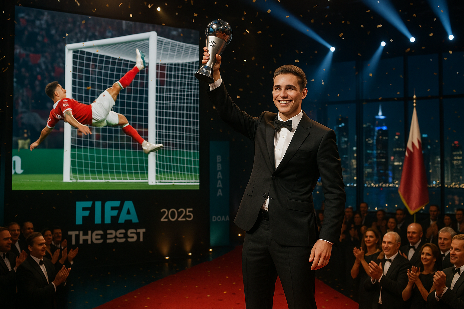 The FIFA The Best Awards 2025 took place on December 17, 2025, at Fairmont Katara Hall in Doha, Qatar, honoring top football achievements. As previewed earlier with nominees across categories, Santiago Montiel of Independiente Argentina won the Puskás Award for his stunning salto goal against Independiente Rivadavia in May 2025, determined by 50% fan votes and 50% FIFA Legends panel. He beat finalists Declan Rice and Lamine Yamal.