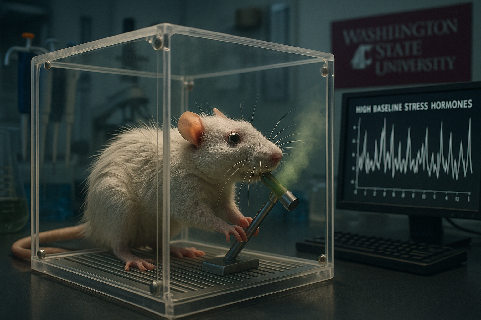 Researchers at Washington State University report that rats with naturally higher baseline stress hormone levels are far more likely to self-administer cannabis vapor. In experiments described in Neuropsychopharmacology, resting stress hormones emerged as the strongest predictor of this drug-seeking behavior, suggesting potential early markers of vulnerability to problematic use.