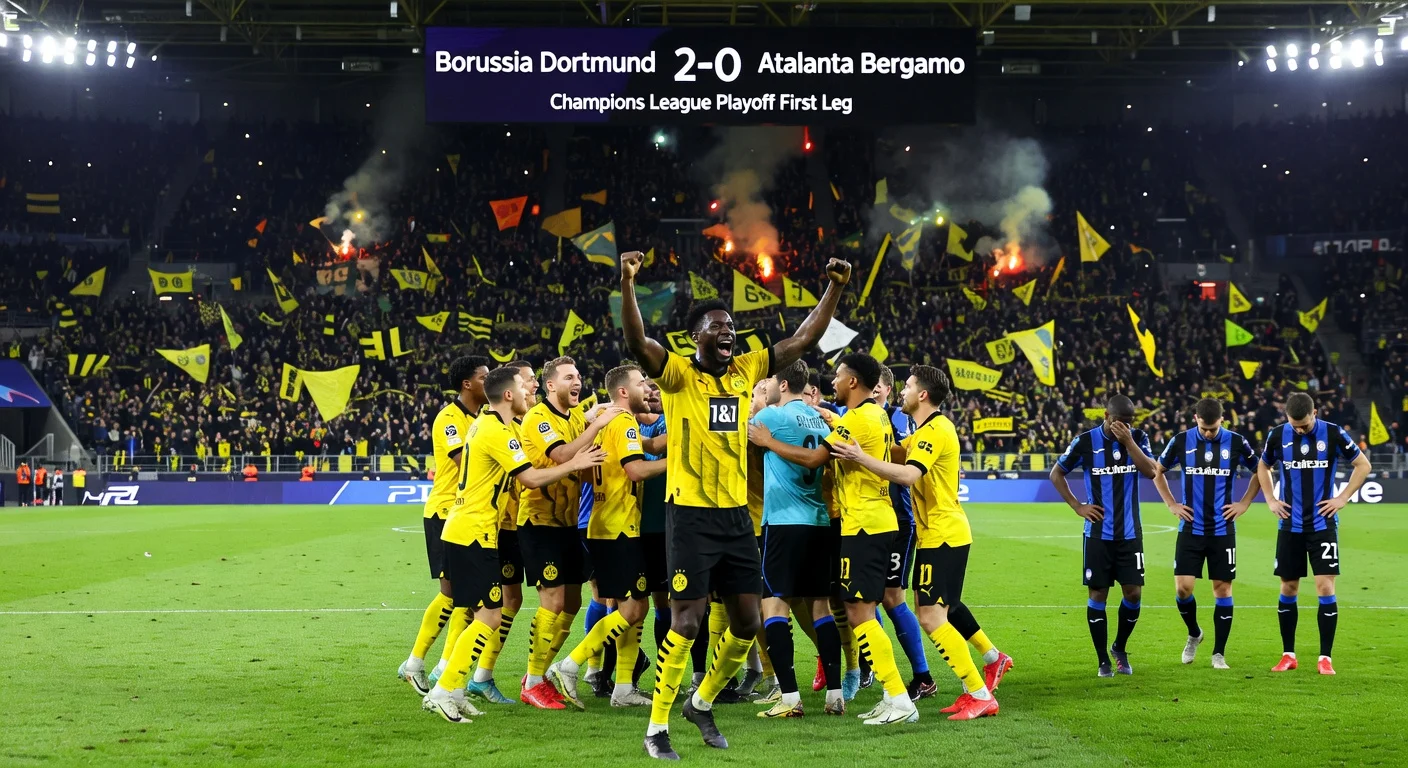 Borussia Dortmund secured a 2-0 victory over Atalanta Bergamo in the Champions League playoff first leg, gaining a strong position for the return match. Serhou Guirassy scored the early opener and set up the second goal. The match started late due to traffic chaos caused by a nearby concert.