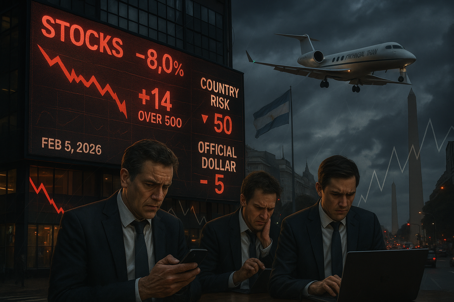 Stocks of Argentine companies on Wall Street declined significantly, with drops of up to 8%. The official dollar quotation fell 5 pesos. This comes shortly after an IMF payment on February 1 and amid ongoing economic stabilization efforts.