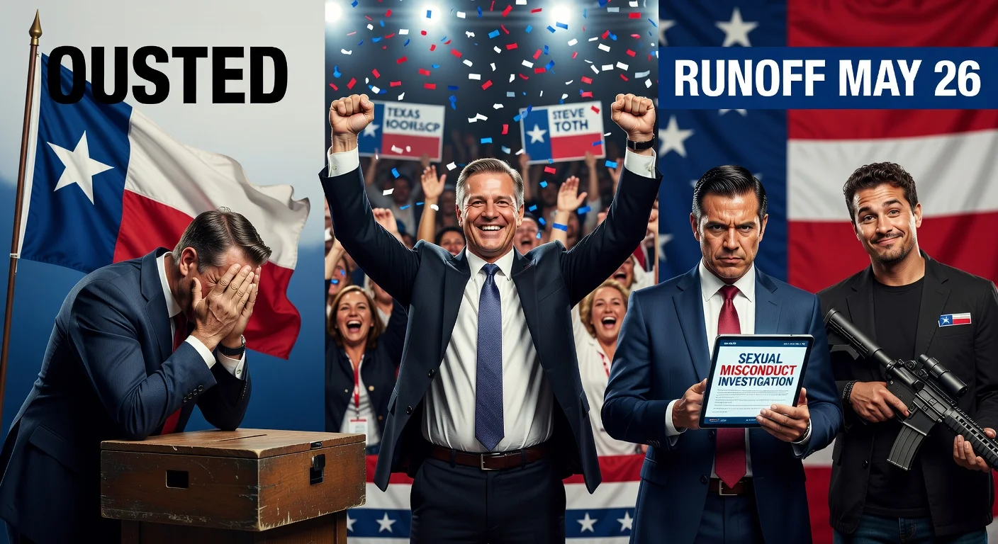 2026年3月4日のテキサス州共和党予備選で、4期目のダン・クレンショー下院議員は挑戦者のスティーブ・トス州下院議員に敗れた。一方、トニー・ゴンザレス下院議員は銃器インフルエンサーのブランドン・ヘレラ氏との5月26日決選投票に進出。ゴンザレス氏は元スタッフとの性的不品行疑惑で新たな下院倫理調査に直面し、共和党内の緊張を浮き彫りにしている。