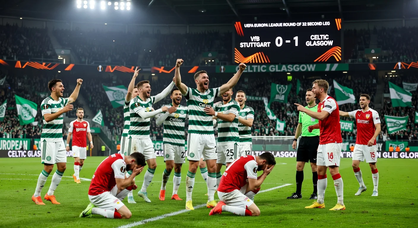 X discussions reflect relief among VfB Stuttgart fans for advancing to the Europa League round of 16 despite a 0-1 home loss to Celtic, described as a 'bearable defeat' due to the 4-2 aggregate. Media provides neutral reports on the early Celtic goal and two disallowed strikes. Some users mock Celtic's European campaign, while others note the Scottish side's spirited performance on the night.