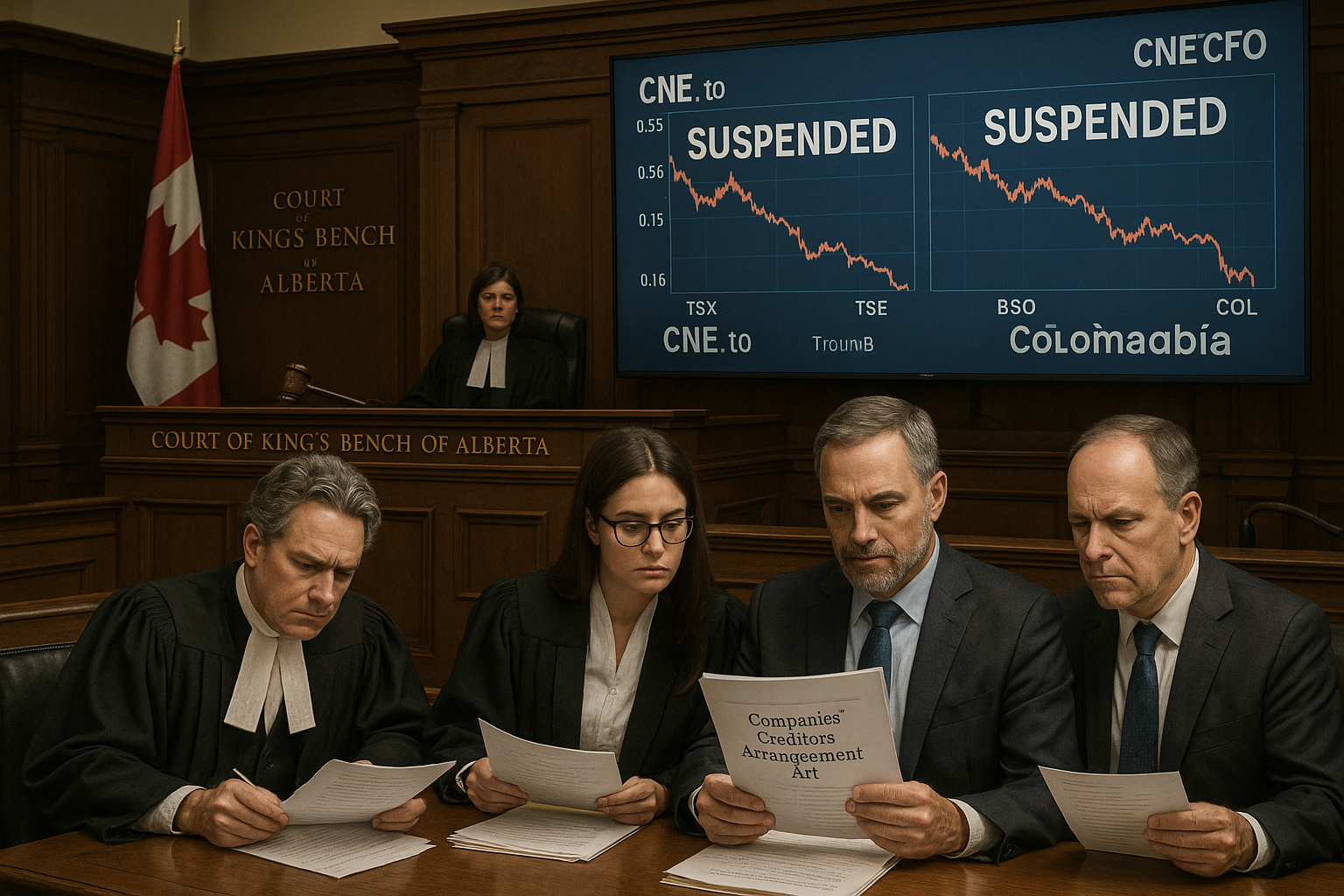 Canacol Energy Ltd. has sought judicial protection under the Companies’ Creditors Arrangement Act (CCAA) in the Court of King's Bench of Alberta, Canada, due to a severe liquidity crisis. The company faces trading suspensions of its shares on the Toronto Stock Exchange and Colombia's Bolsa de Valores de Colombia, with reviews for potential delisting. This step aims to restructure debts while sustaining operations in Colombia.