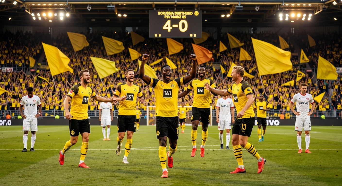 After the break, Mainz goalkeeper Daniel Batz made strong saves against Felix Nmecha (52nd), Beier (55th), and Julian Brandt (57th). Dortmund controlled the game and added the 4-0 in the 84th minute through Ramy Bensebaini from another Ryerson corner. One source reports it as an own goal by Dominik Kohr in that minute.
