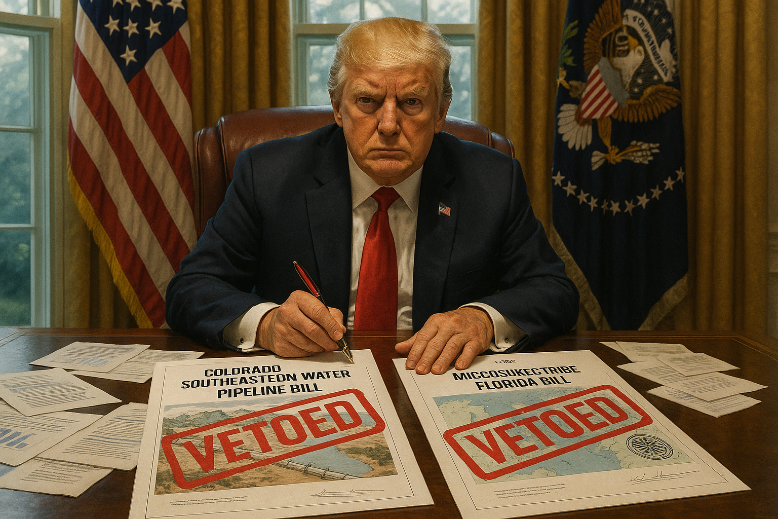 President Donald Trump has vetoed two bipartisan measures — one aimed at advancing a long-running drinking-water pipeline project in southeastern Colorado and another involving the Miccosukee Tribe in Florida — citing cost and policy concerns that critics describe as political retaliation.