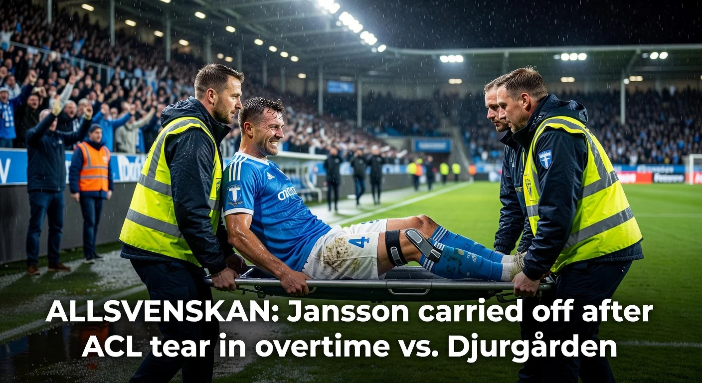Malmö FF-forsvarsspiller Pontus Jansson har røket fremre korsbånd i høyre kne under bortekampen mot Djurgården, noe som gjør at han mister resten av sesongen. 35-åringen ble båret av banen på båre etter en kollisjon i overtiden. Jansson har delt emosjonelle meldinger på Instagram om sin kommende reise.