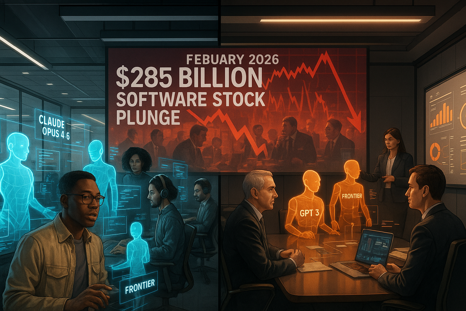 Em 5 de fevereiro de 2026, Anthropic e OpenAI lançaram simultaneamente produtos que mudam os usuários de conversar com IA para gerenciar equipes de agentes de IA. Anthropic introduziu Claude Opus 4.6 com equipes de agentes para desenvolvedores, enquanto OpenAI revelou Frontier e GPT-5.3-Codex para fluxos de trabalho empresariais. Esses lançamentos coincidem com uma queda de US$ 285 bilhões em ações de software em meio a temores de que a IA perturbe fornecedores tradicionais de SaaS.