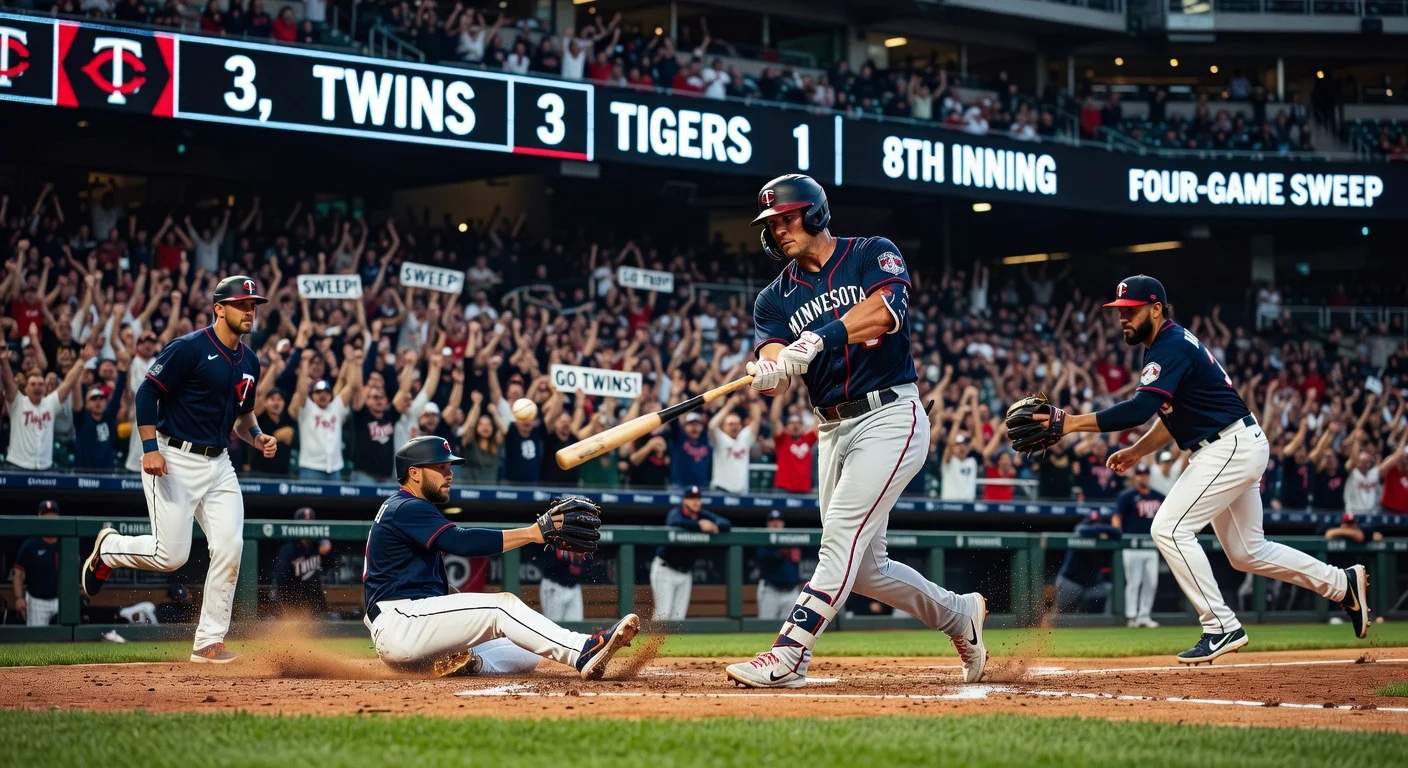 Brooks Lee came off the bench to deliver a tiebreaking two-run single in the eighth inning, powering the Minnesota Twins to a 3-1 victory over the Detroit Tigers on Thursday at Target Field. The win completed a four-game sweep for Minnesota. Lee, who entered the game mired in a 5-for-30 slump, became the hero in a rally sparked by Matt Wallner and Victor Caratini.