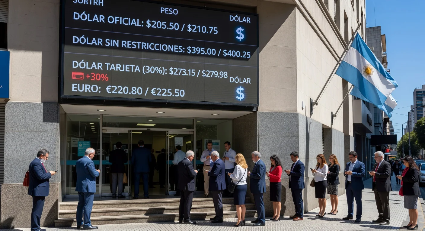 Na quinta-feira 26 de fevereiro, veículos econômicos atualizaram as cotações do dólar na Argentina. O dólar oficial é obtido sem limites em bancos desde abril, segundo o TN. Foram detalhados preços do blue dollar, MEP, CCL, crypto e atacado, todos acessíveis sem restrições cambiais. Para o dólar cartão, usado para compras no exterior com cartões para bens e serviços, aplica-se um acréscimo de 30%. Os bancos forneceram cotações banco a banco. Em paralelo, foram publicadas cotações do euro e blue euro nos diversos bancos do país. Essas atualizações refletem o atual mercado cambial na Argentina, enfatizando a disponibilidade sem limites do dólar oficial.
