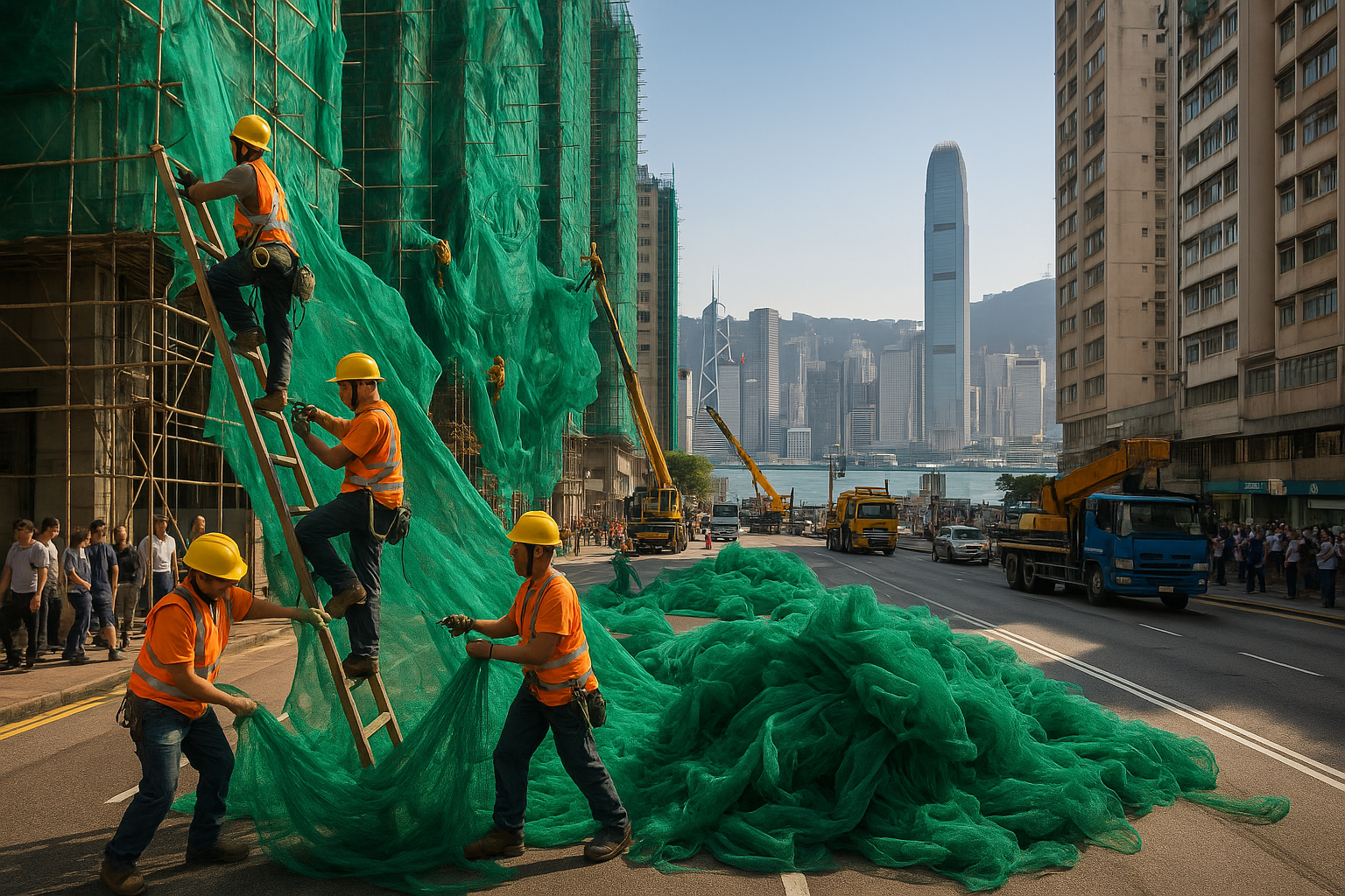 On Wednesday, the Hong Kong government ordered the removal of all about 200 scaffold nets citywide by Saturday, following allegations that a Shandong-based manufacturer falsified safety certificates for materials used in housing renovation projects in Chai Wan and Fortress Hill. The company claimed certification from the National Quality Inspection and Testing Centre for Labour Protective Equipment in Beijing, but Security chief Chris Tang Ping-keung stated the centre never issued such documents, launching a criminal probe.