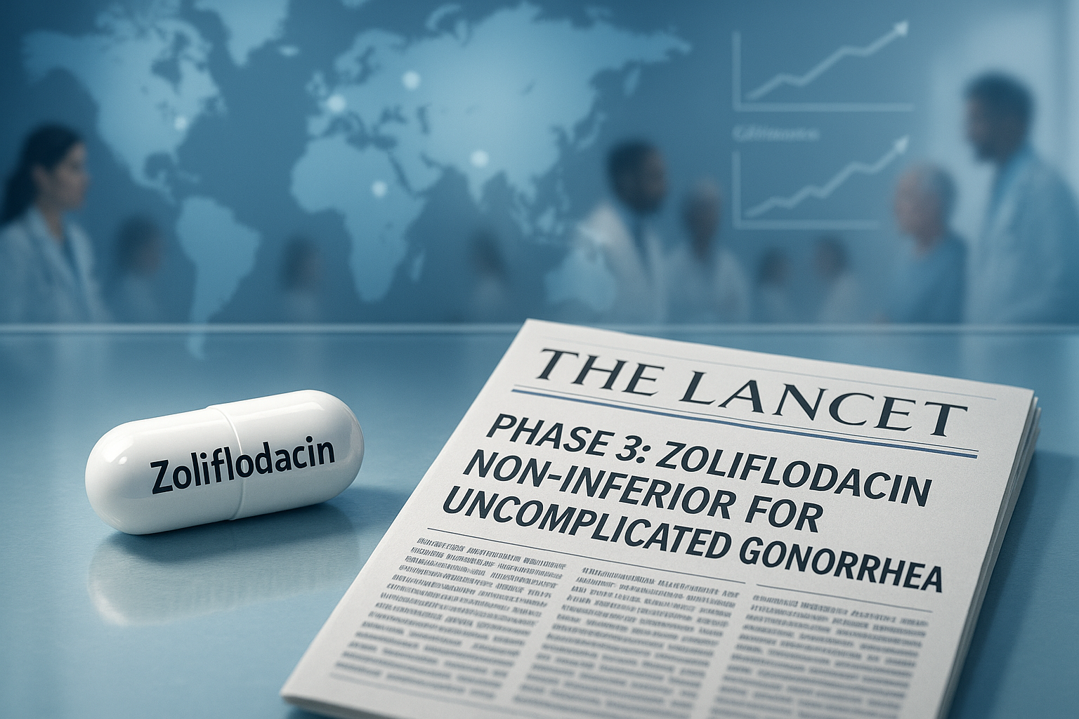 Um ensaio clínico de fase 3 do zoliflodacin — um candidato a antibiótico oral de primeira classe e dose única para gonorreia não complicada — foi publicado na The Lancet, adicionando detalhes revisados por pares aos achados principais anteriores divulgados em 2023 e apresentações subsequentes em conferências.