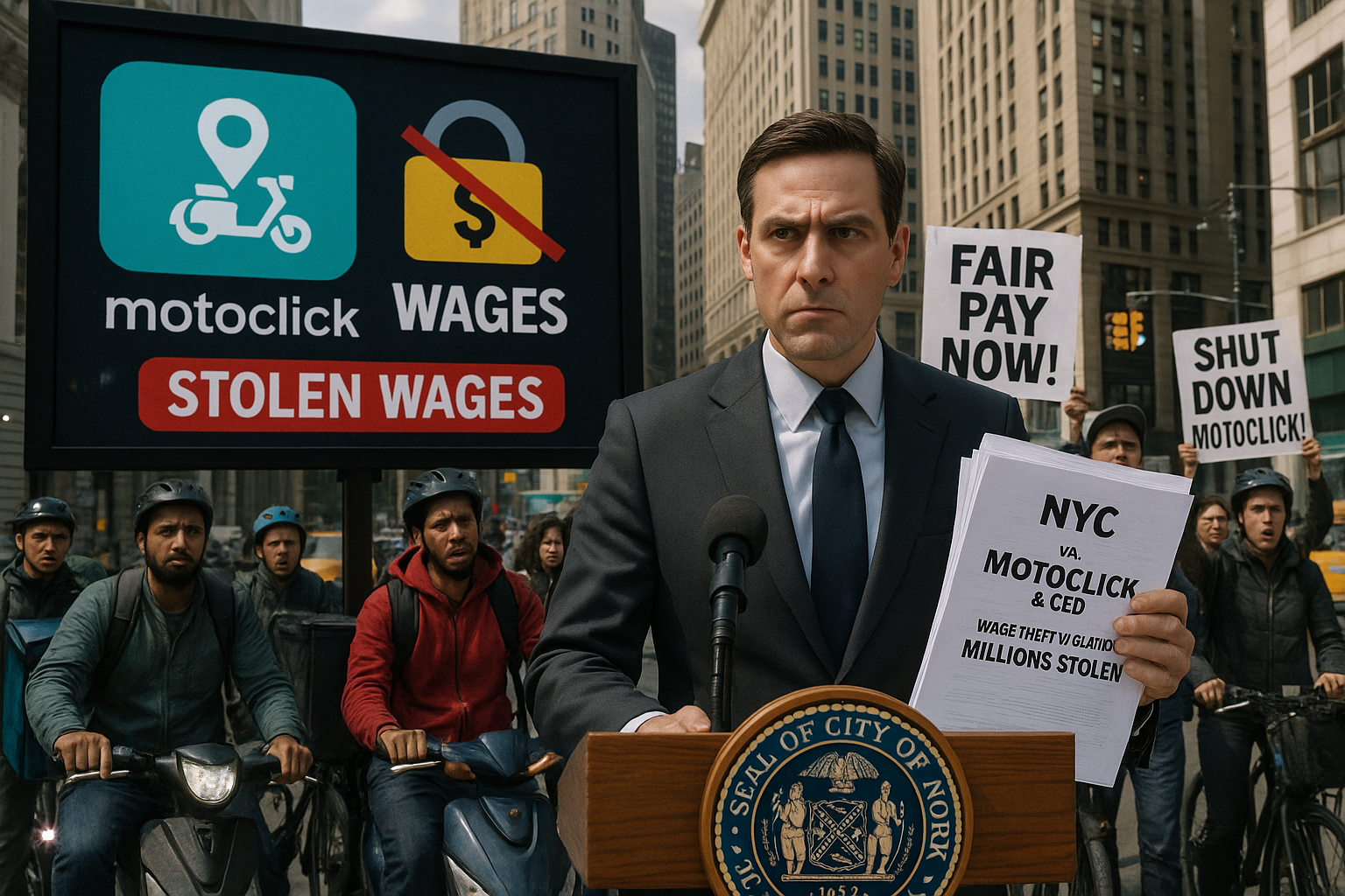 Nova Iorque entrou com uma ação judicial contra o aplicativo de entregas Motoclick e seu CEO, alegando taxas ilegais e outras violações das regras de pagamento a trabalhadores de entrega da cidade, que a cidade diz somarem milhões de dólares em salários roubados e danos. Autoridades da cidade dizem que buscam fechar a empresa e alertam outras plataformas de entrega antes de novas leis de proteção a trabalhadores entrarem em vigor em 26 de janeiro de 2026.