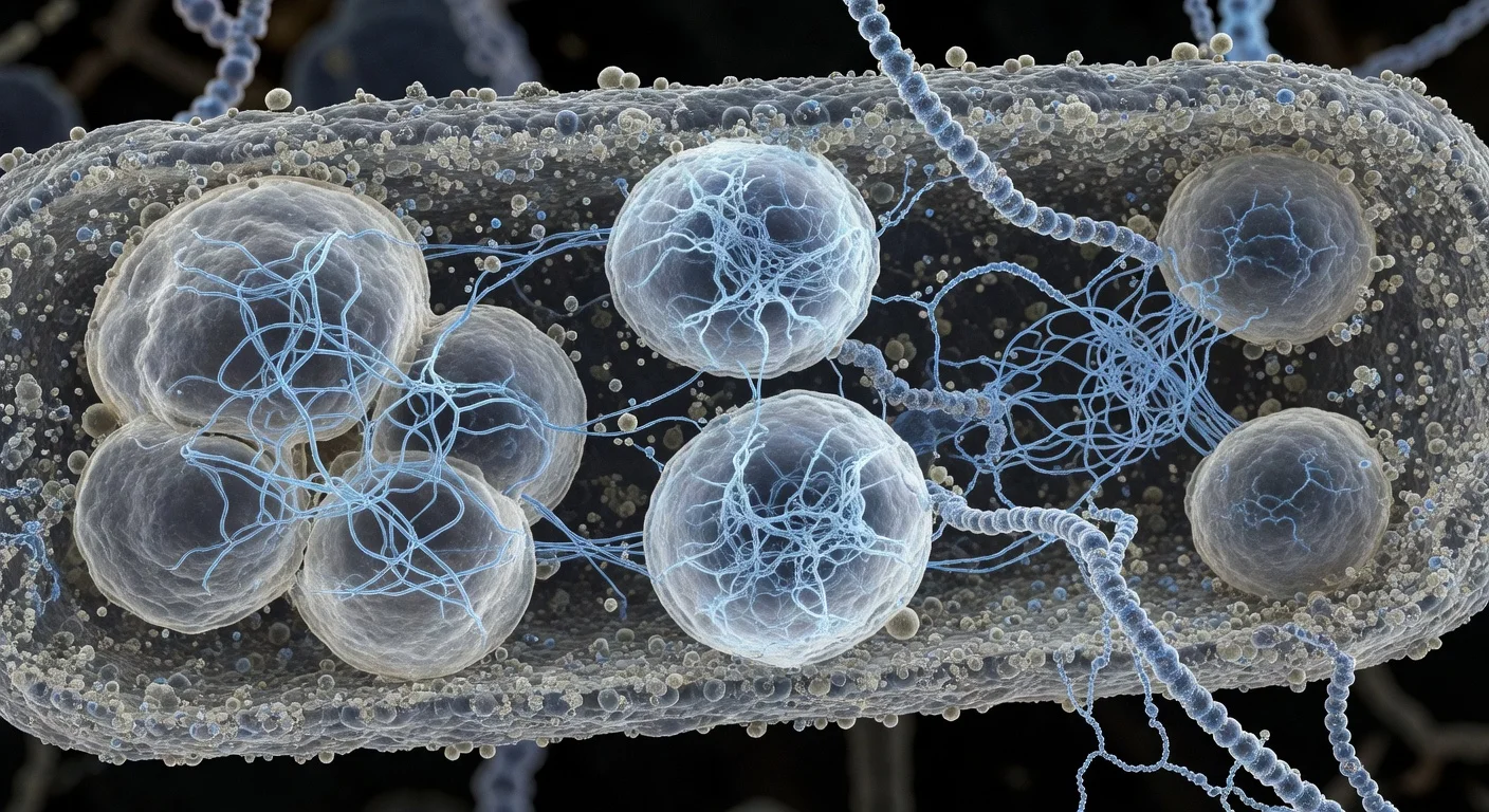 Cientistas do Scripps Research relatam que alguns condensados biomoleculares —compartimentos celulares sem membrana, semelhantes a gotas— contêm redes de filamentos proteicos finos que atuam como um andaime interno. A equipe diz que perturbar essa arquitetura de filamentos altera as propriedades físicas dos condensados e prejudica o crescimento bacteriano e a segregação de DNA, levantando a possibilidade de que a estrutura dos condensados possa um dia ser alvo terapêutico em doenças como câncer e ELA. O estudo apareceu em Nature Structural & Molecular Biology em 2 de fevereiro de 2026.