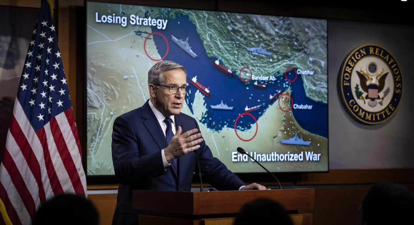 O senador Chris Van Hollen, democrata de Maryland e membro do Comitê de Relações Exteriores do Senado, afirmou que a medida do presidente Donald Trump de bloquear o transporte marítimo de e para portos iranianos dificilmente alcançará o objetivo da administração de reabrir o Estreito de Ormuz, e argumentou que o conflito é ilegal por falta de autorização do Congresso.