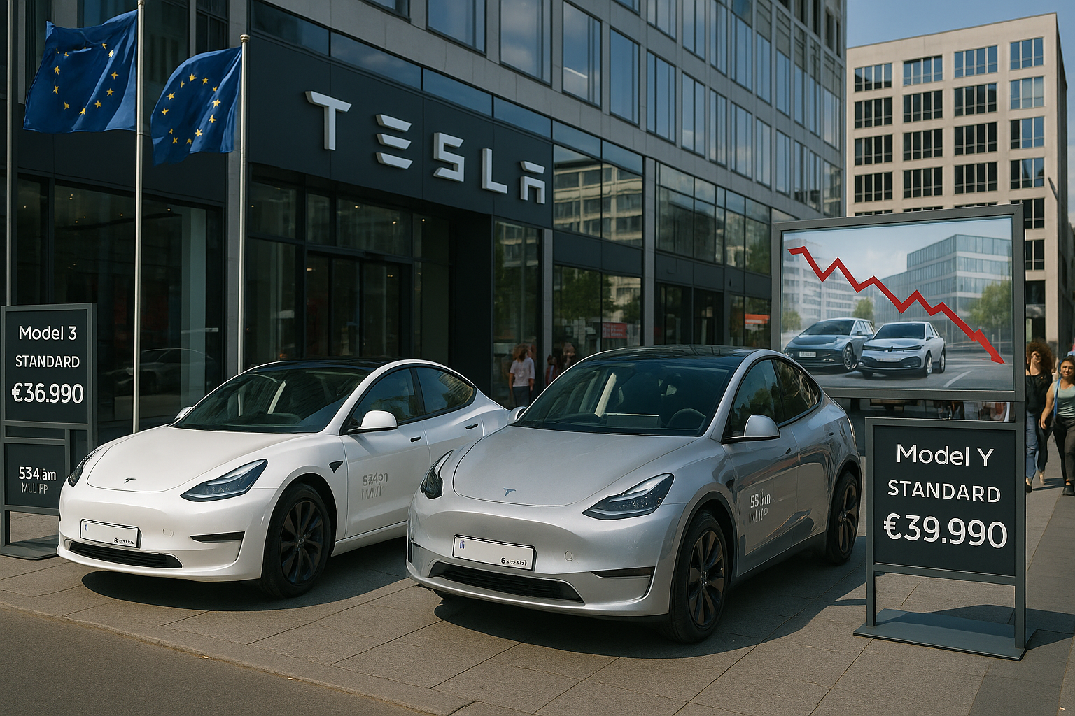 Esta estratégia posiciona o Model 3 €1.000 abaixo do BYD Atto 3 a €37.990, oferecendo mais espaço e autonomia do que o Volkswagen ID.3 Pure (€29.760 com bônus na Alemanha). O Model Y undercuta ligeiramente o VW ID.4 Pure (€40.335). Fatores por trás da queda nas vendas incluem concorrência crescente de fabricantes chineses e europeus, uma linha estagnada e problemas de marca ligados às atividades do CEO Elon Musk.