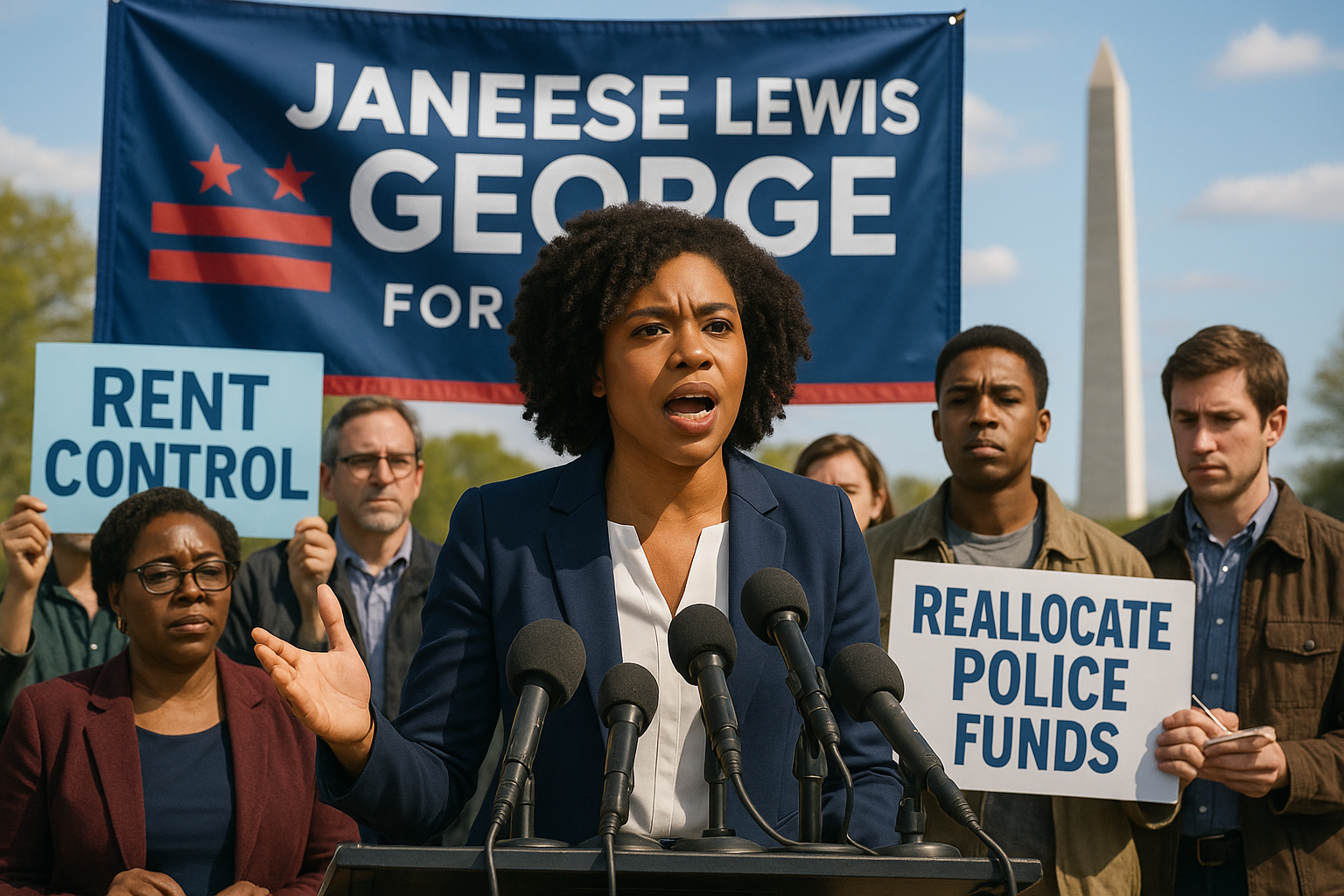 Reactions on X to Janeese Lewis George's DC mayoral candidacy are polarized. Progressive supporters celebrate her as a people-powered democratic socialist advocating for housing and safety. Conservative critics highlight her DSA ties, labeling her a radical who could exacerbate crime. Journalists neutrally note her as the first major candidate post-Bowser.