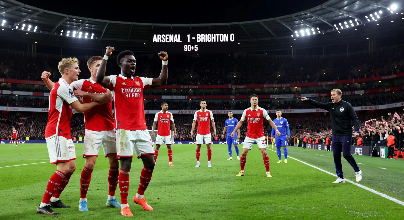 Arsenal secured a hard-fought 1-0 victory over Brighton & Hove Albion at the Amex Stadium, with Bukayo Saka's early deflected goal proving decisive. The win, coupled with Manchester City's 2-2 draw against Nottingham Forest, extended Arsenal's Premier League lead to seven points despite playing one more game. Brighton manager Fabian Hurzeler accused Arsenal of time-wasting, while Arsenal's defense held firm.