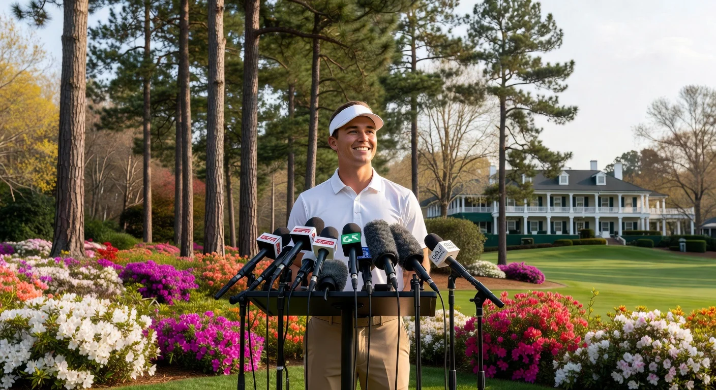 Ludvig Åberg confidently addresses media at Augusta National press conference ahead of the Masters, looking fit after health recovery.