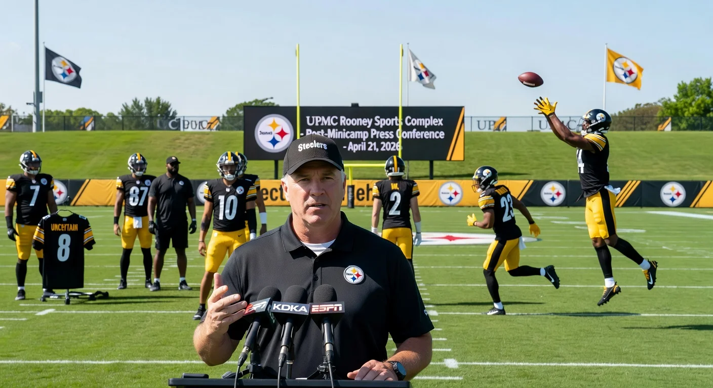 Pittsburgh Steelers head coach Mike McCarthy stated he plans to keep three quarterbacks on the 53-man roster and possibly a fourth on the practice squad. Speaking after voluntary minicamp on April 21, 2026, at UPMC Rooney Sports Complex, McCarthy said Will Howard and Mason Rudolph have been splitting first-team reps amid uncertainty over Aaron Rodgers' future. He also praised the team's defensive line, running back Rico Dowdle and wide receiver DK Metcalf.