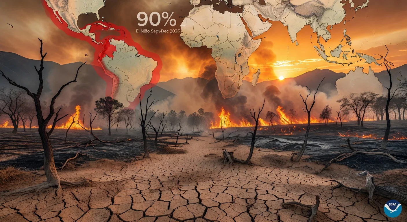 The US National Oceanic and Atmospheric Administration (NOAA) updated its forecasts, estimating a 90% probability of El Niño starting in September 2026 and lasting through the year's final quarter. It raised the May-July projection from 25% in March to 61%. Experts warn of impacts in regions like the Caribbean, Andes, and Orinoquía, including forest fire risks from water deficits and thermal stress.